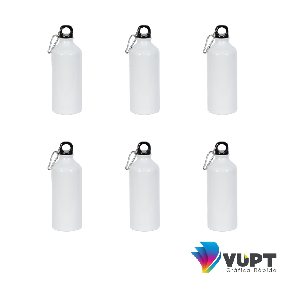 Garrafa de Alumínio Tampa Mosquetão 600ml Personalizada - Kit 25 unidades